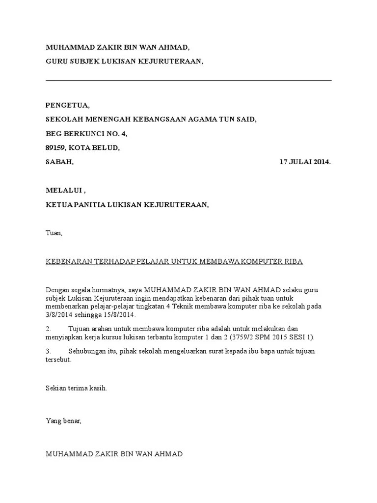 Surat Rasmi Permohonan Laptop Cangkruk C
