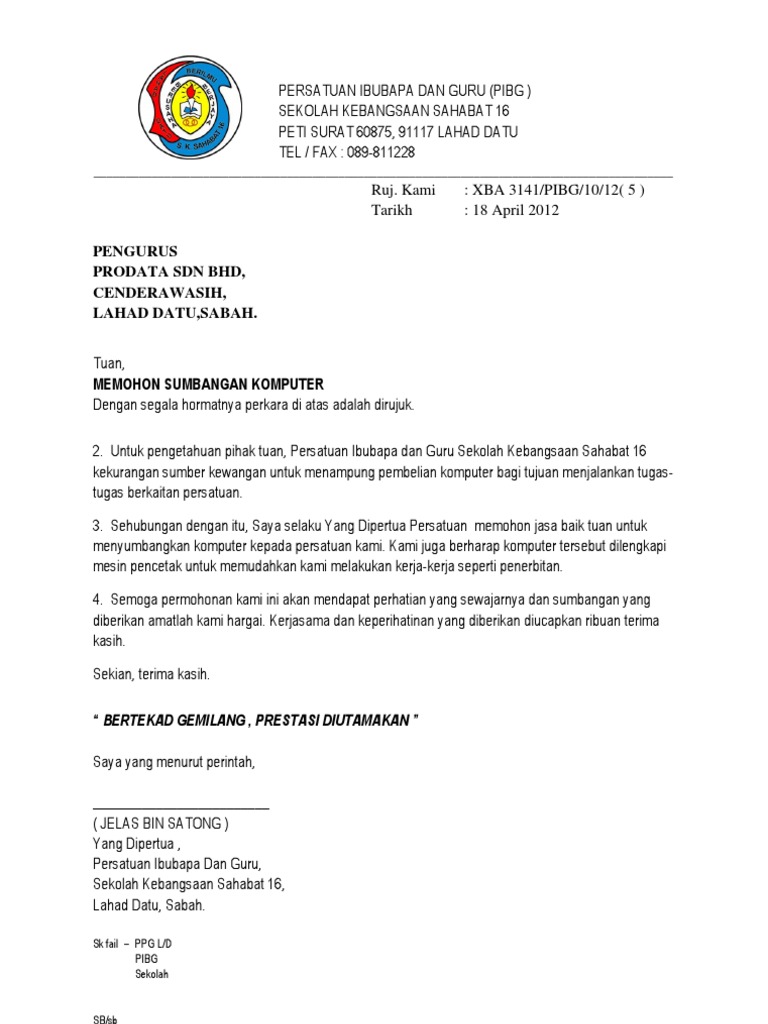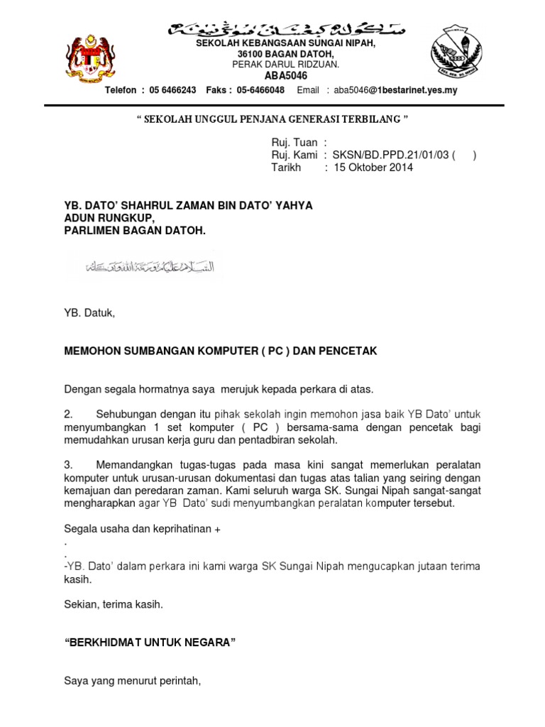 Surat Rasmi Memohon Sumbangan Komputer Blog Mesra E